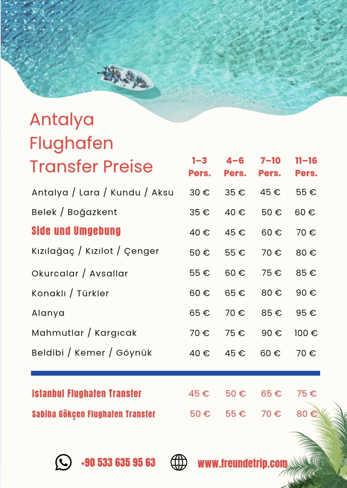 - ✅ Privater Hin- und Rücktransfer Antalya (AYT)